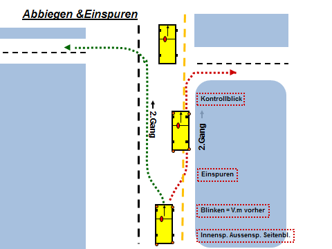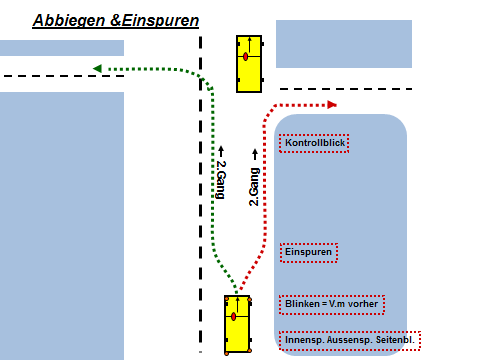1. Einspuren damit der Verkehr flüssiger ablaufen kann und vom nachfolgenden Fahrzeug ihr Blinker nicht verdeckt wird.